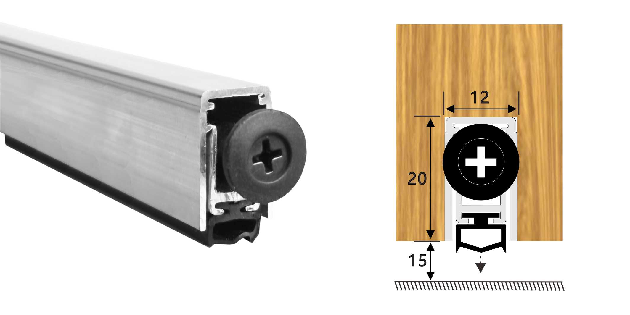 嵌入式門底自動升降式密封器,四連桿機構(gòu),適用于門扇內(nèi)開槽的門。安裝時需在門底有一個20mm*12mm的通槽,將產(chǎn)品放置其中,將兩端蓋板和密封器用螺絲固定(或用螺絲從密封條底部向上固定),使用本產(chǎn)品不影響門的整體風(fēng)格。